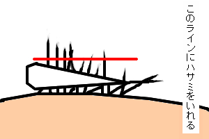 押し付けてカットをすると短くなりすぎてしまうので、