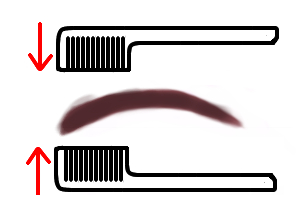 眉頭から眉尻へ向かってコームを動かします。(図1)